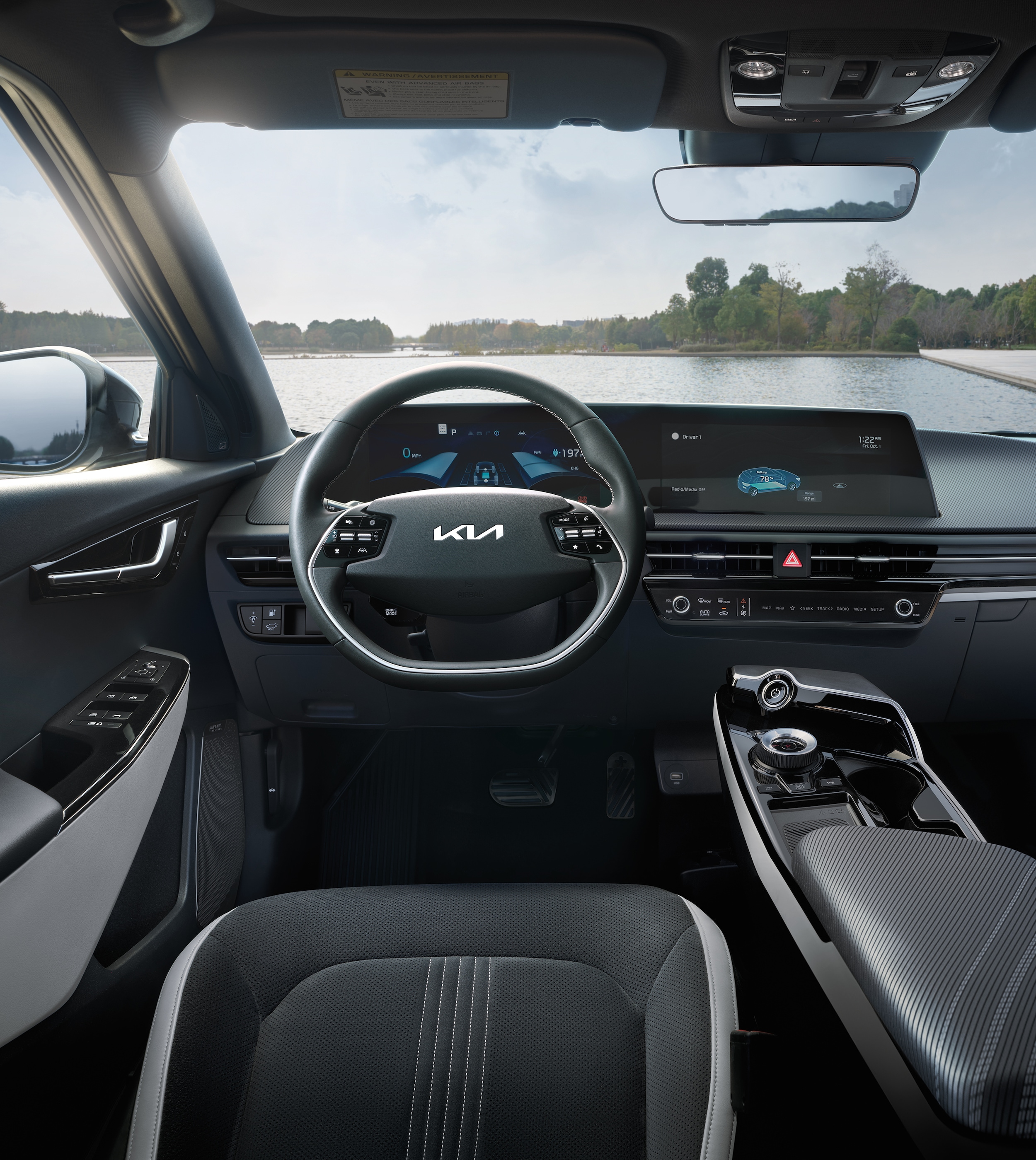 The new Kia EV6 integrates user-friendly technology throughout the cabin to make every journey more convenient and enjoyable. You'll have access to a digital dashboard with dual 12.3-inch panoramic displays showcasing your infotainment system and gauge clusters. The curved interface makes it driver-friendly while the integrated blue light filter helps reduce eye strain. You can also connect your smartphone using Apple CarPlay and Android Auto to stream your favorite playlists, pull up turn-by-turn directions, and make hands-free phone calls.
