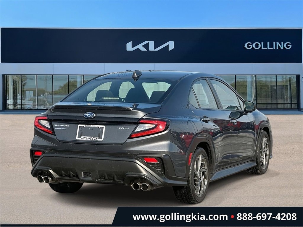 This vehicle is equipped with the following features: harman kardon & Moonroof (harman/kardon Speaker System and Power Tilt Up Moonroof), 4-Wheel Disc Brakes, 6 Speakers, ABS brakes, Air Conditioning, All-Weather Floor Liners, Alloy wheels, AM/FM radio: SiriusXM, Auto High-beam Headlights, Auto-Dimming Mirror w/Compass & HomeLink, Auto-dimming Rear-View mirror, Automatic temperature control, Brake assist, Bumpers: body-color, Driver door bin, Driver vanity mirror, Dual front impact airbags, Dual front side impact airbags, Electronic Stability Control, Emergency communication system: STARLINK Safety and Security (Subscription Required), Exterior Parking Camera Rear, Four wheel independent suspension, Front anti-roll bar, Front Bucket Seats, Front Center Armrest, Front dual zone A/C, Front fog lights, Front reading lights, Fully automatic headlights, Heated door mirrors, Heated front seats, Illuminated entry, Knee airbag, Leather Shift Knob, Leather steering wheel, Low tire pressure warning, Occupant sensing airbag, Outside temperature display, Overhead airbag, Overhead console, Panic alarm, Passenger door bin, Passenger vanity mirror, Performance Design Heated Front Bucket Seats, Power door mirrors, Power steering, Power windows, Premium Cloth Upholstery w/Red Stitching, Radio data system, Radio: Subaru STARLINK 11.6" Multimedia Plus Sys, Rear anti-roll bar, Rear seat center armrest, Rear window defroster, Remote keyless entry, Security system, Speed control, Speed-sensing steering, Split folding rear seat, Spoiler, Sport steering wheel, STARLINK/Apple CarPlay/Android Auto, Steering wheel mounted audio controls, STI Short Throw Shifter (WRX), Tachometer, Telescoping steering wheel, Tilt steering wheel, Traction control, Trip computer, Variably intermittent wipers, and Wheels: 18" x 8.5" Dark Gray Finish Alum Alloy.